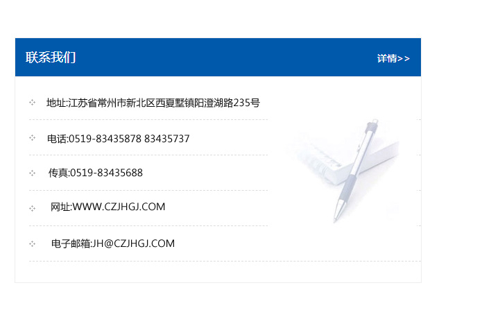 地址:常州市新北區(qū)友邦商務大廈1幢16、17層  電話:0519-85101652  傳真:0519-85112595  郵編:213022  網(wǎng)址:www.cz-jiayue_cn.xingja.com  郵箱:xiajifengaa@163.com